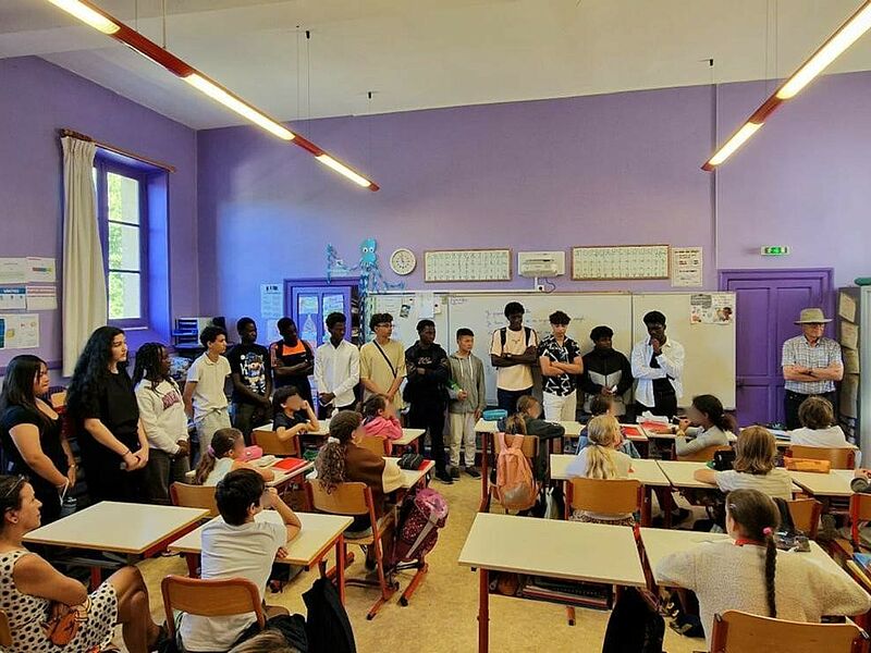En 2024-2025, les élèves allophones du collège ont participé au programme académique « Migration, citoyenneté et vidéo // Cour(t)s d’histoires ». Il s’agit d’un concours de courts-métrages qui repose sur la création, par des élèves de collèges et lycées de Nouvelle-Aquitaine, de portraits vidéo de 2 minutes sur des personnes et des lieux qui font l’histoire des immigrations de notre région.