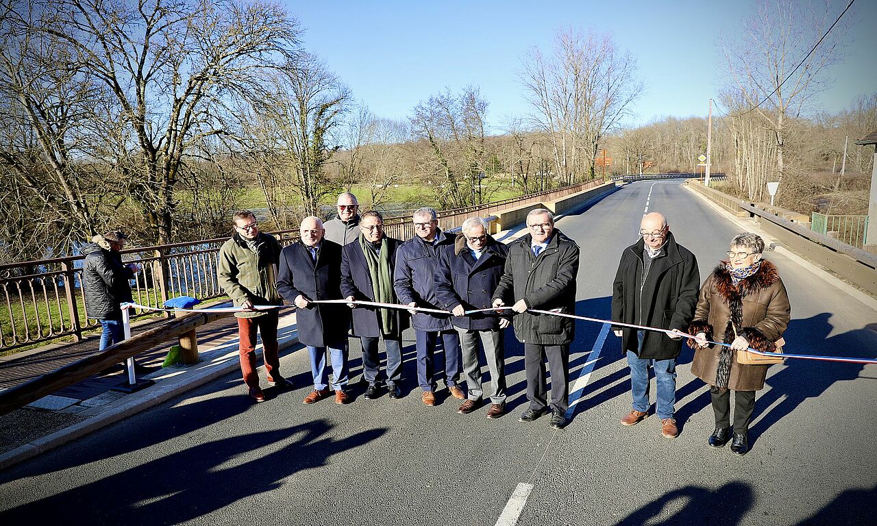 Les travaux de réhabilitation du pont de Cherveix-Cubas, qui permet à la D704 de franchir l’Auvézère, ont été inaugurés vendredi 17 janvier 2025, en présence de Germinal Peiro, président du Conseil départemental de la Dordogne, Benoît Legrand, sous-préfet de Nontron, Bruno Lamonerie, conseiller départemental du canton et président de la communauté de communes Isle Loue Auvézère en Périgord, Corinne Ducrocq, conseillère départementale, Jean-Marie Queyroi, maire de Cherveix-Cubas, et Philippe Faure, maire d’Anlhiac.