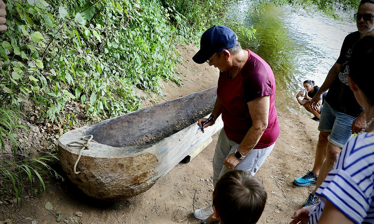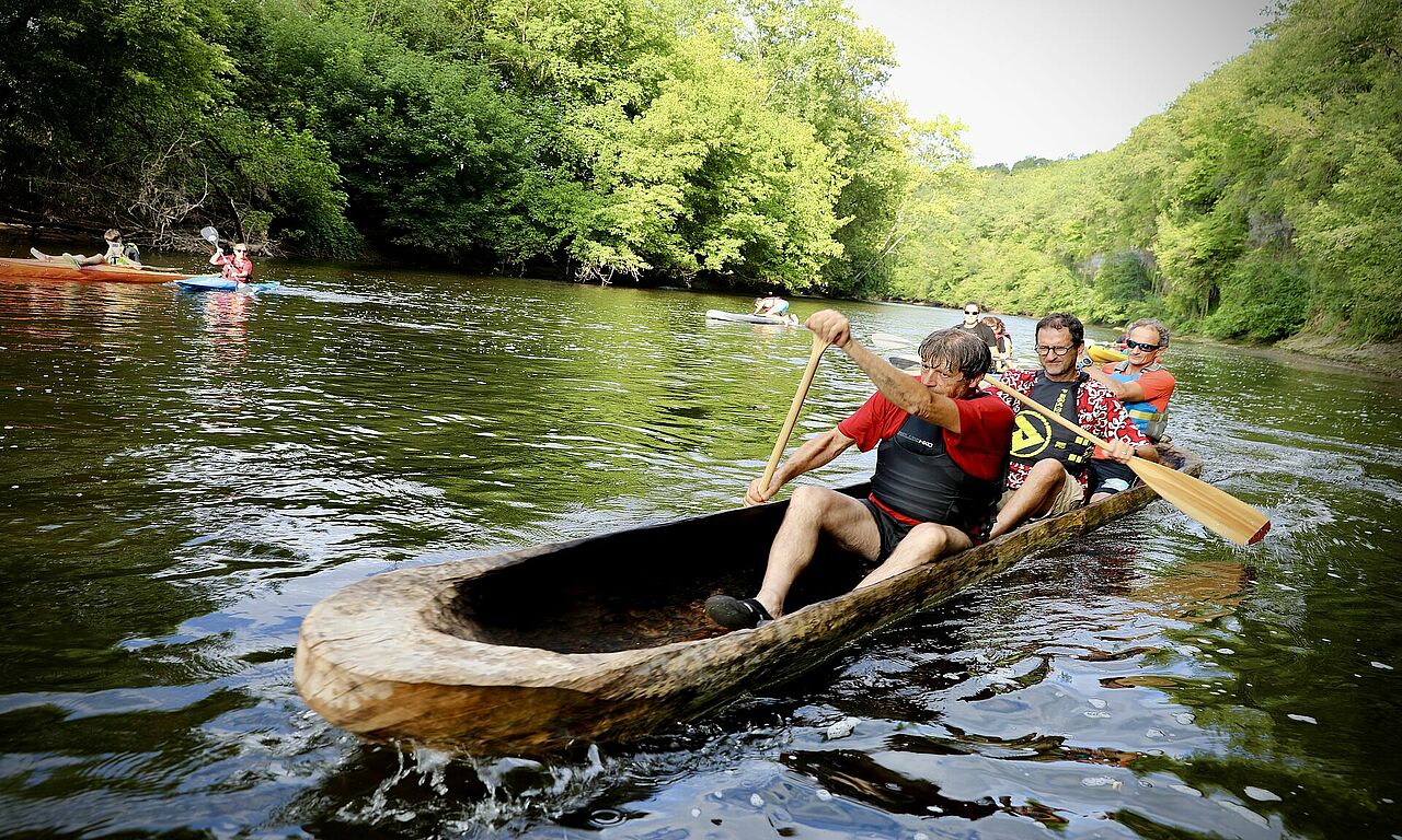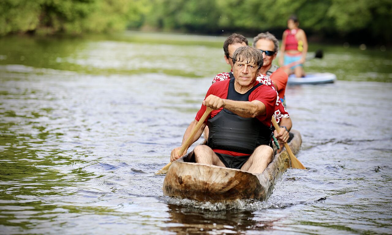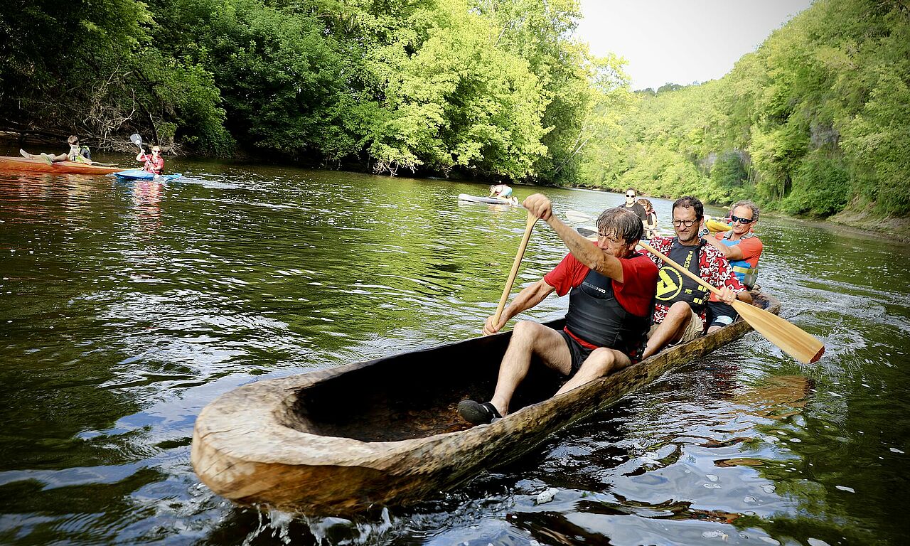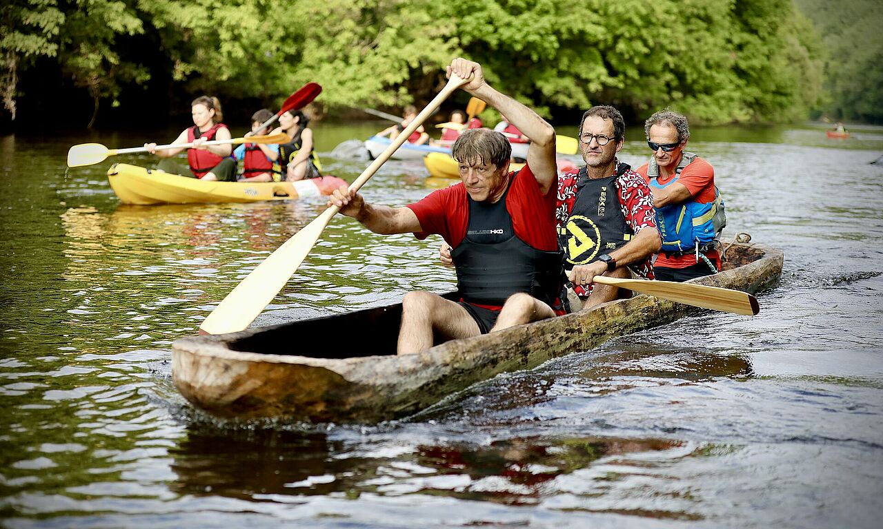 Mardi 6 août, la pirogue a été baptisée avant d’être mise à l’eau pour une navigation longue de 5 km sur la Vézère, entre Campagne et Le Bugue… Une odyssée accompagnée sur l’eau par des dizaines de suiveurs, biens souvent passionnés d’archéologie.