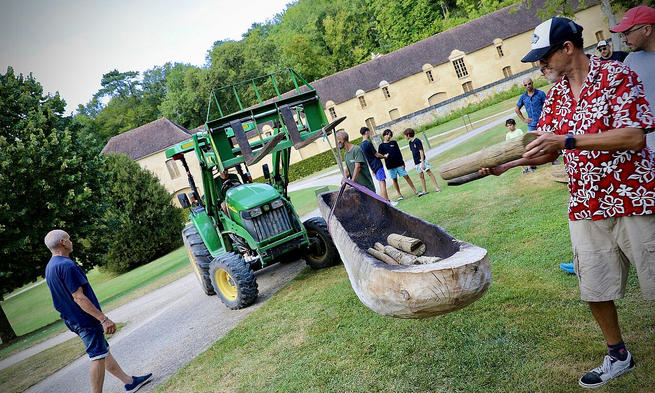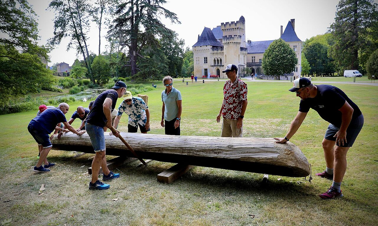 Le fil rouge de ces jeux, labellisés olympiade culturelle était la construction d’une pirogue néolithique, taillée dans un tronc d’arbre avec le concours de l’association Koruc sur le site départemental de Campagne. Cette pirogue monoxyle de 6 mètres de long a été creusée à l’aide de haches en pierre polie.