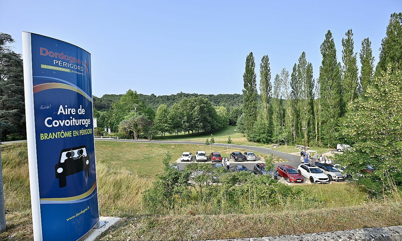 La réalisation de l’aire départementale de covoiturage de Brantôme-en-Périgord a été effectuée en concertation avec la commune, le Département, en contrebas du giratoire avec un accès depuis la voie communale en direction de Valeuil.