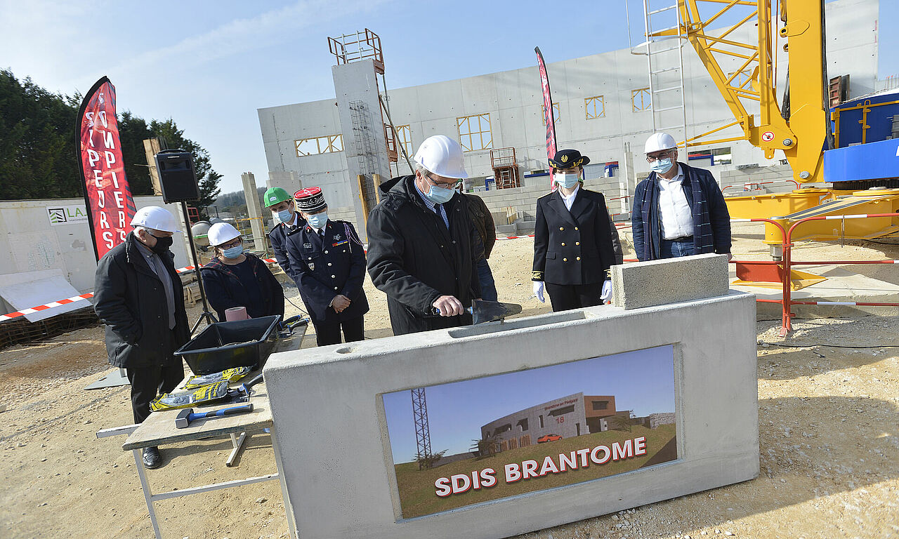 La première pierre de ces nouveaux locaux a été posée jeudi 4 mars, en présence notamment du président du SDIS (Service départemental d'incendie et de secours) Germinal Peiro et des deux conseillers départementaux du canton Jeannik Nadal et Marie-Pascale Robert-Rolin.