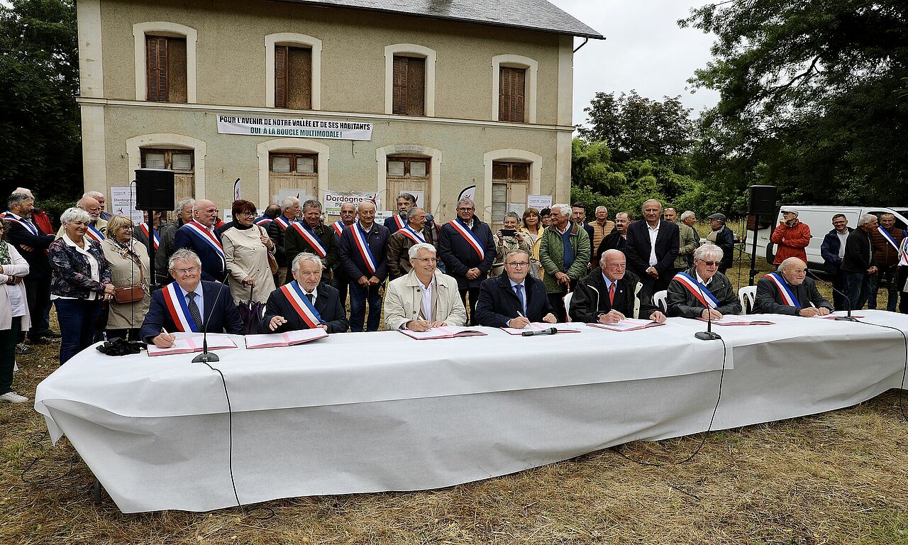 Le samedi 22 juin sera à marquer d'une pierre blanche dans le processus de réalisation du nouveau projet de boucle multimodale pour des mobilités d’avenir. Une étape importante a en effet été franchie avec la signature de la Convention pour la réouverture de la halte ferroviaire de Fayrac et la mise en œuvre de la boucle multimodale d’accès aux deux rives de la Vallée de la Dordogne, au cœur du triangle d’or Les Milandes, Castelnaud-la-Chapelle, Marqueyssac et Beynac et Cazenac.