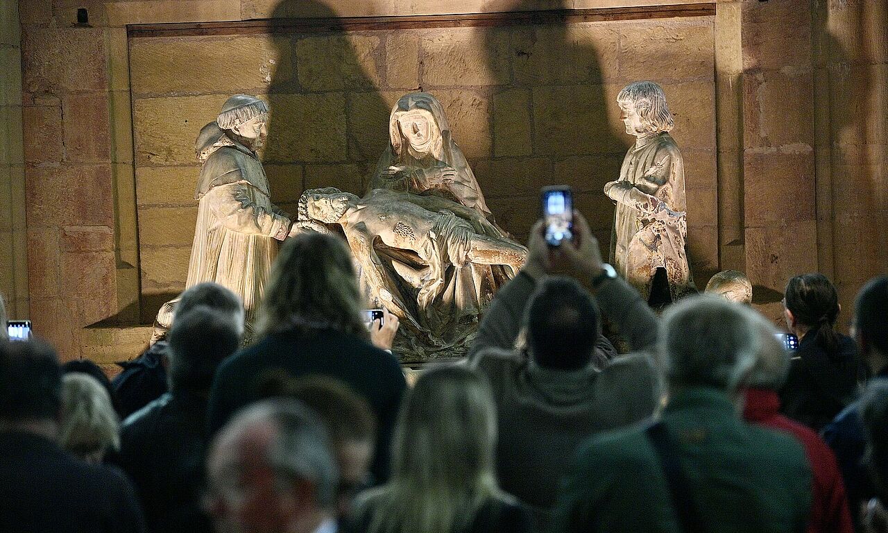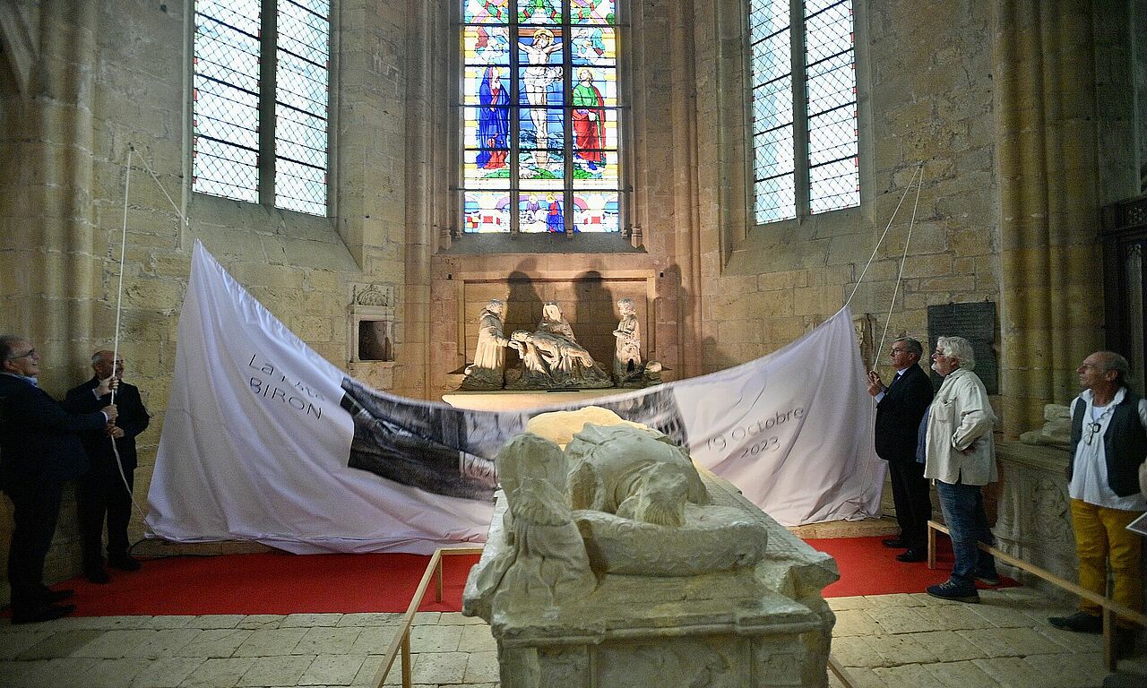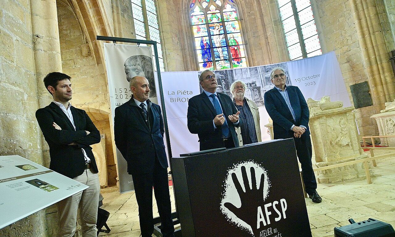 Jusqu’au dernier moment, juste avant qu’elle ne soit exposée aux yeux des visiteurs du château de Biron, les artistes de l’AFSP ont peaufiné leur réalisation. Plus d’un siècle après, la Piéta et ses donateurs trône de nouveau sur son socle, dans le cœur de la chapelle de Biron, après avoir été dévoilée jeudi 20 octobre.