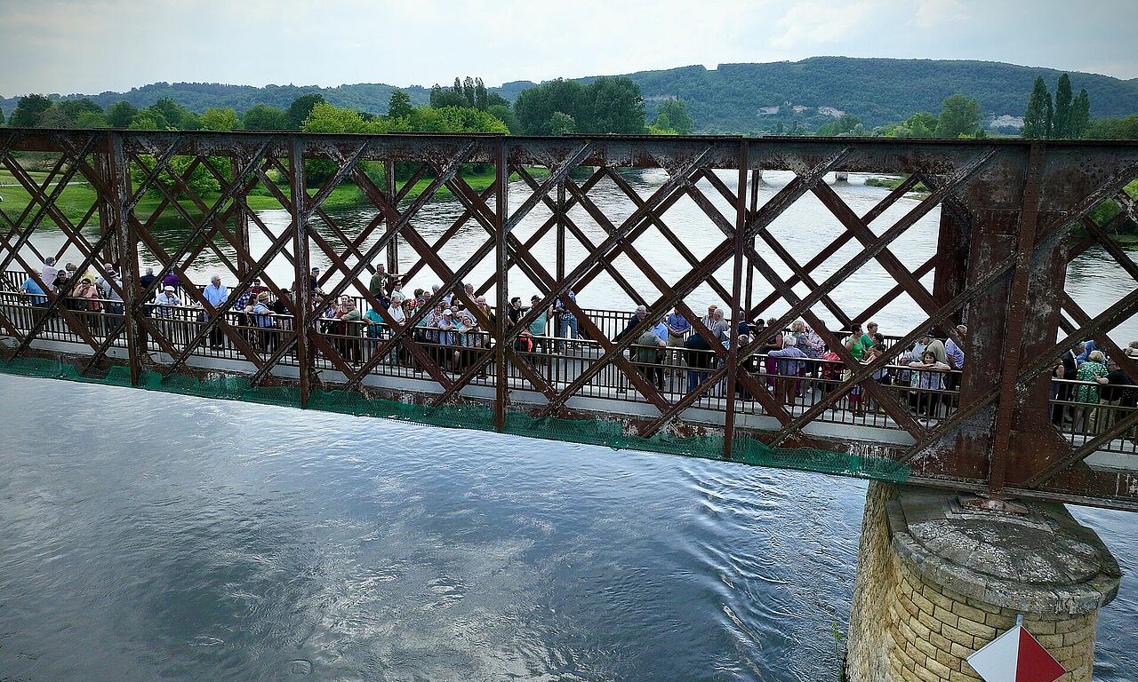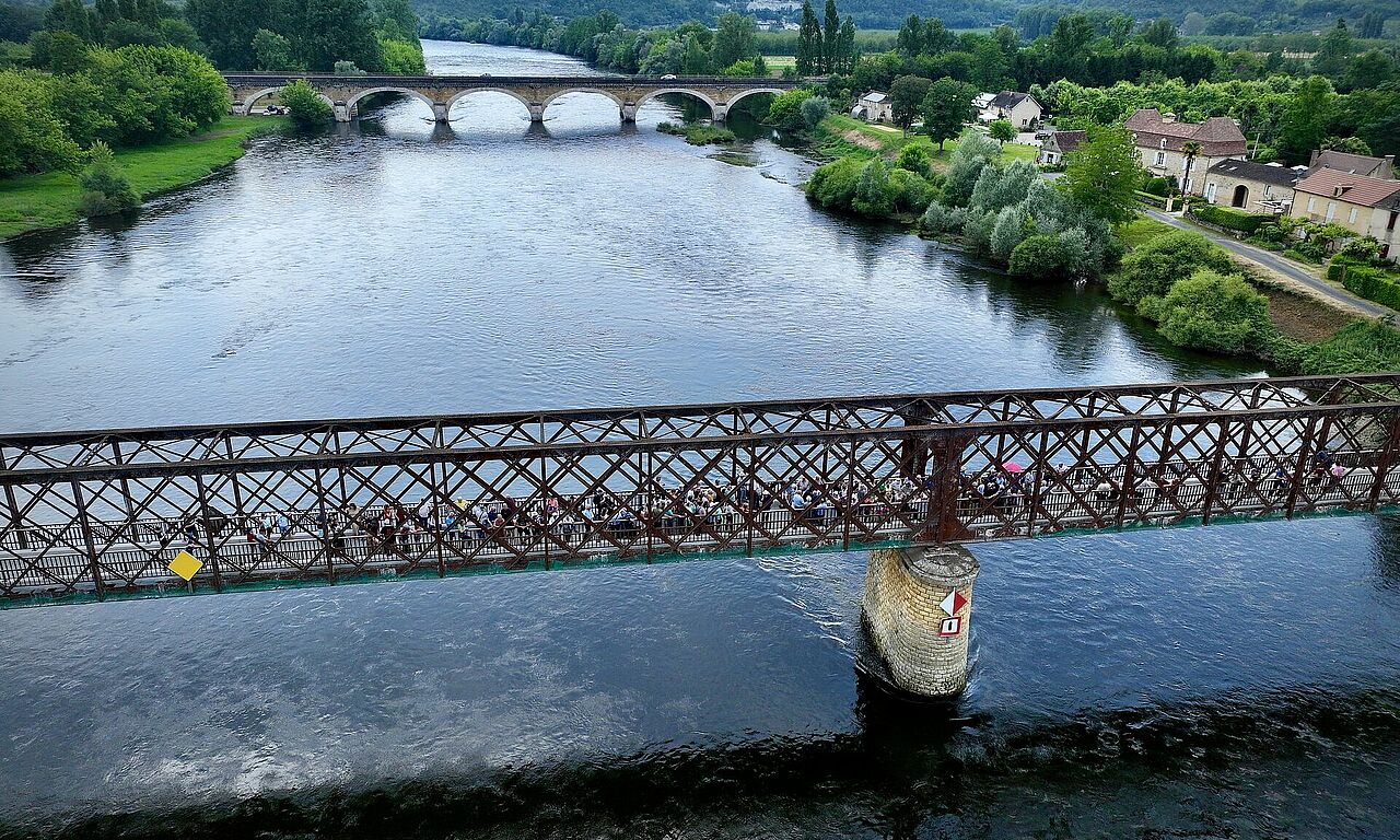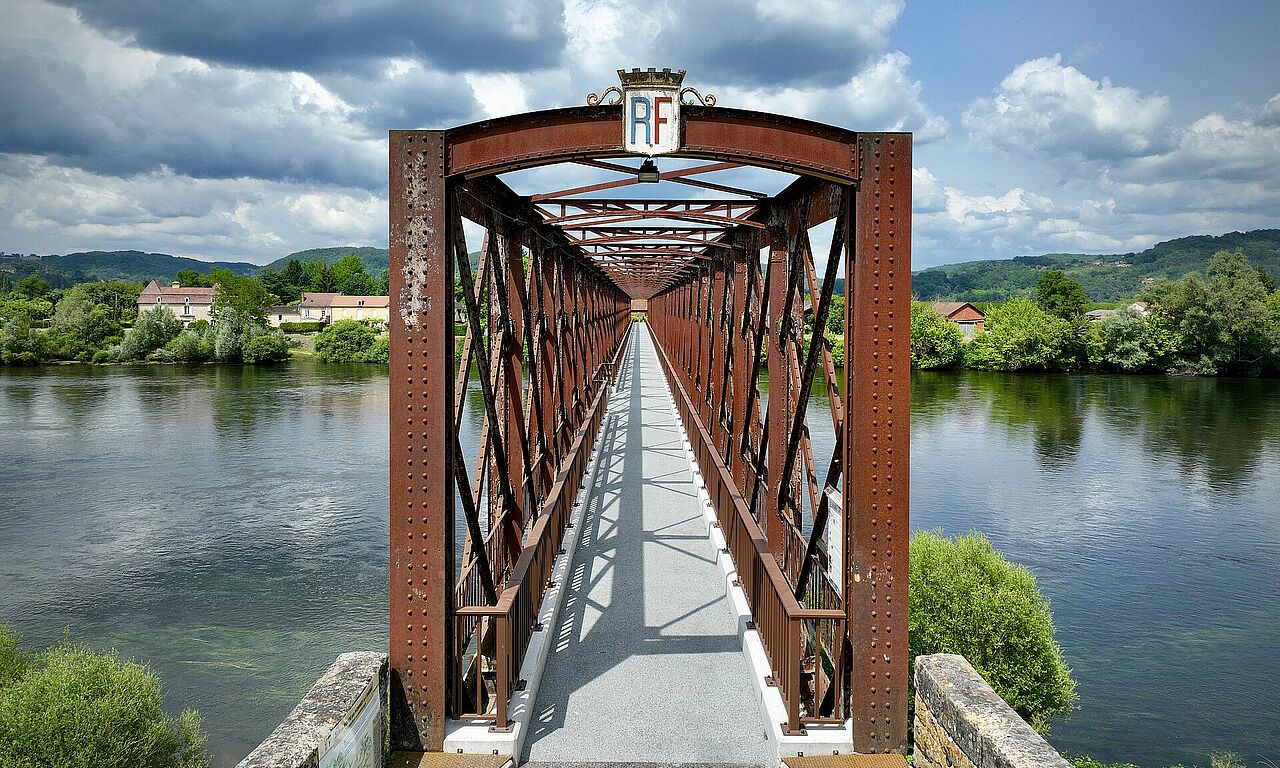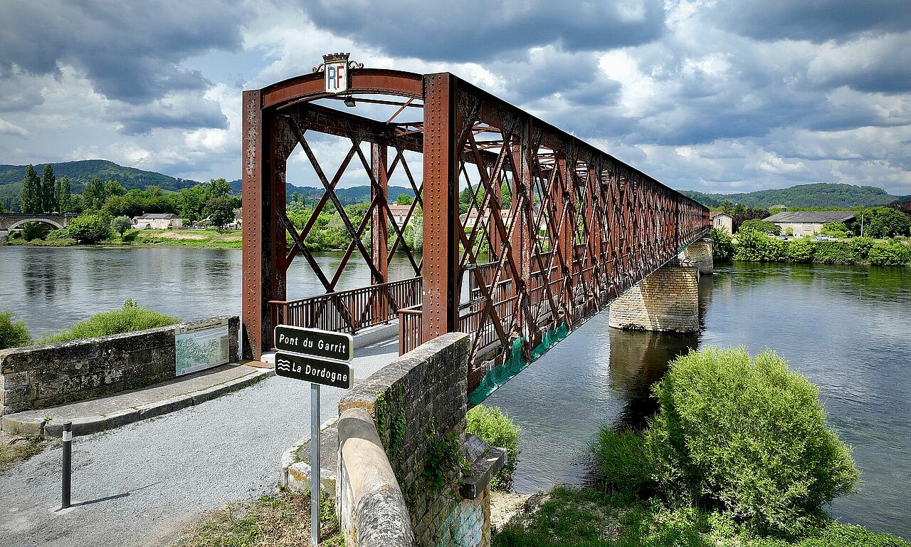 Situé en site patrimonial remarquable (SPR) côté Saint-Cyprien et site inscrit (front de la Dordogne) côté Berbiguières, ainsi qu’en zone Natura 2000, le pont du Garrit a été construit entre 1892 et 1894 pour remplacer le bac ancestral et faire traverser les hommes. Il s’agit d’un pont métallique de style Eiffel – à poutres treillis et voûtains en brique.