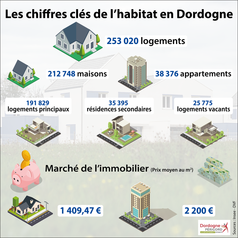 Depuis 2006, l’habitat constitue l’un des axes majeurs de la politique menée par le Département. Elaboré dans le cadre du Plan départemental de l’habitat, l’Observatoire départemental de l’habitat (https://habitat.dordogne.fr) a pour vocation d’être un outil de connaissances et d’analyses mis au service des élus et des différents acteurs de l’habitat (bailleurs, propriétaires occupants, etc.).