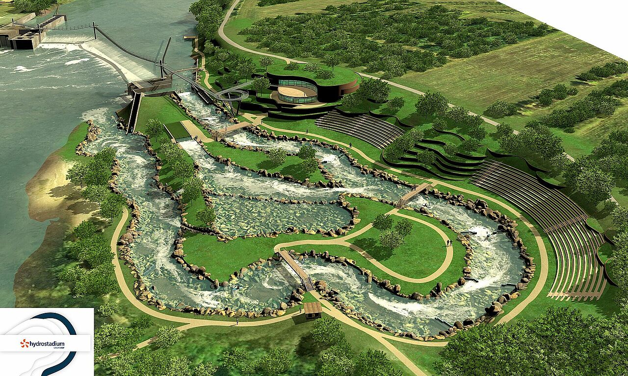 Le Département de la Dordogne souhaite prendre la maîtrise d’œuvre pour la construction du parcours d’eaux vives, en déviant la rivière Dordogne tout en assurant sa continuité écologique. Il comprendrait une rivière artificielle, praticable en canoë, mini-raft, et une vague pour la pratique du surf. La construction d’un bâtiment en intégration paysagère est également envisagée. L’ensemble deviendrait une nouvelle base départementale.