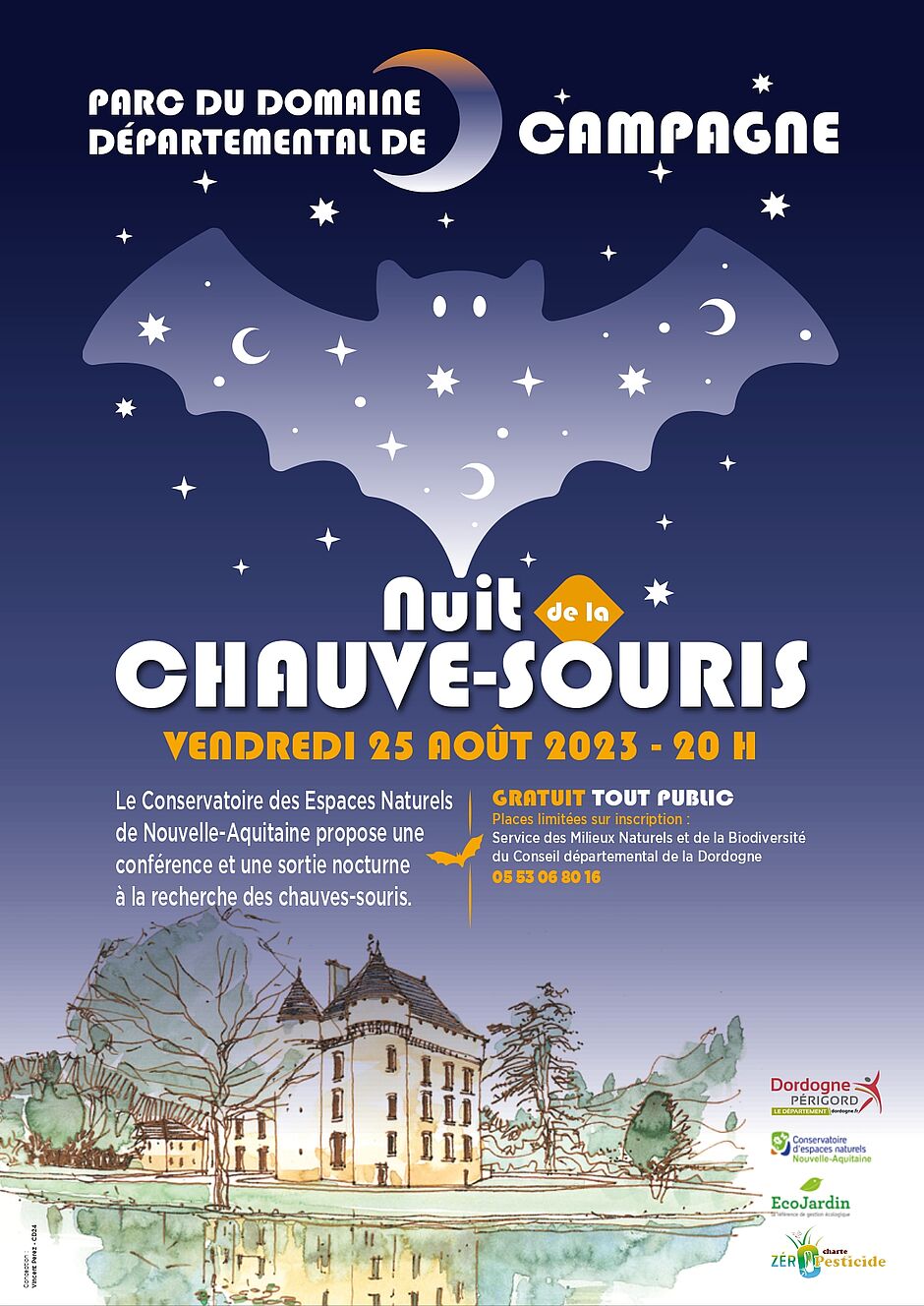 Une soirée de découverte des chauves-souris au château de Campagne ça vous tente ? Au programme : conférence, diaporama et sortie nocturne autour du château à la découverte des chauve-souris…